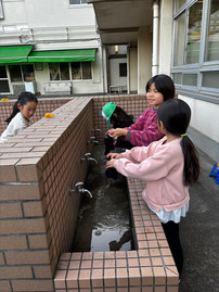 そして大掃除の後は、お菓子詰め放題大会です。お菓子が竹籠からドッサリ出されると、大きな歓声があがります!袋にたくさん詰めこんで、子どもたち目がキラキラと輝きます。山中校長先生から素敵な差し入れもいただき、本当に盛り上がりました!ありがとうございました。